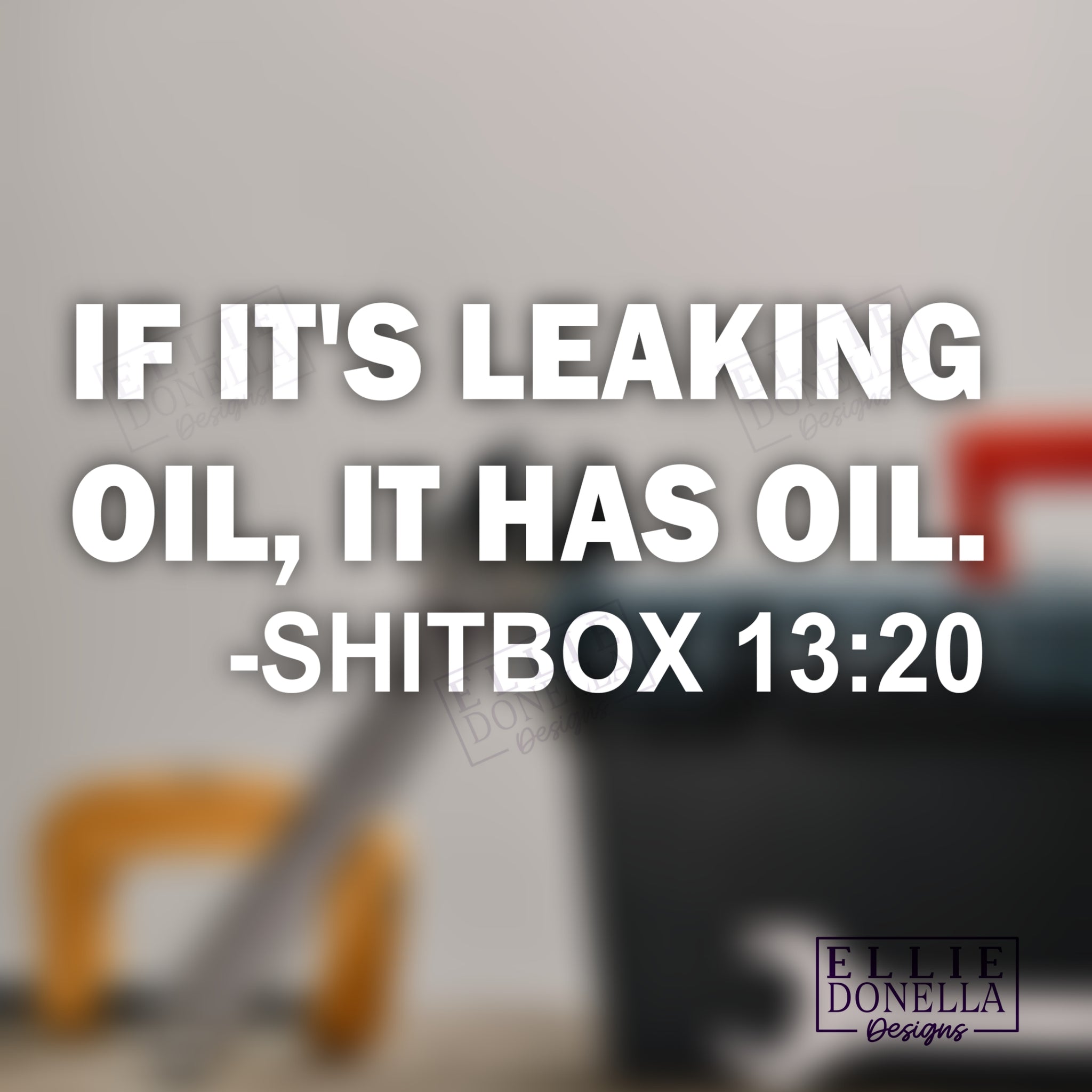 This 6-inch decal is perfect for any car enthusiast. Featuring a humorous phrase, "If it leaks oil, it has oil.- SHIT BOX 13:20", this decal is a great way to show off your automotive knowledge. It's made from high-quality, durable material that can withstand weather and other conditions, making it a great custom addition to your car.